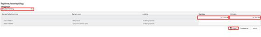 NB! Start- og sluttdato må være i en periode barnet er plassert.