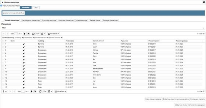 - Barn som skal bytte avdeling, type plass eller timeplan frem i tid.