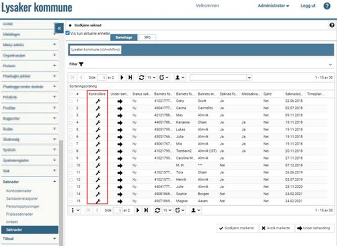 Dette gjøres ved å gå til Søknader > Søknader og ikonet i kolonnen Kontrollere: