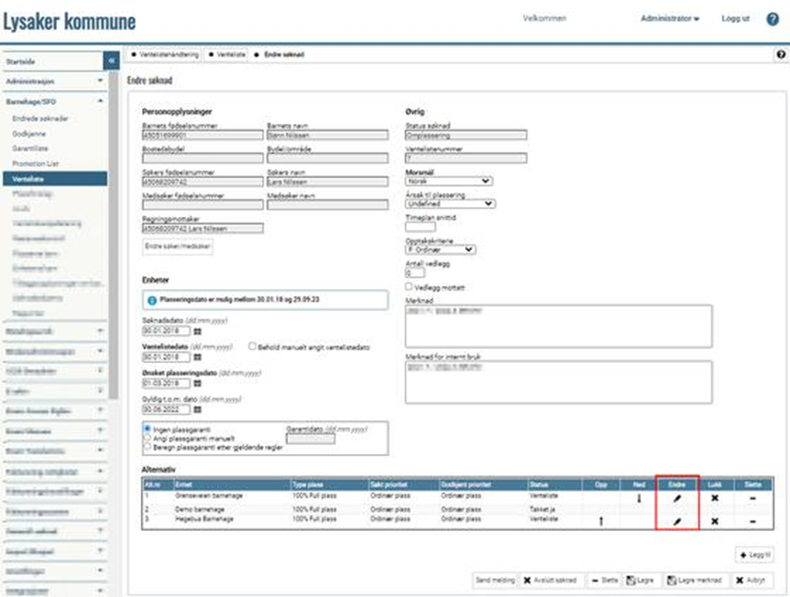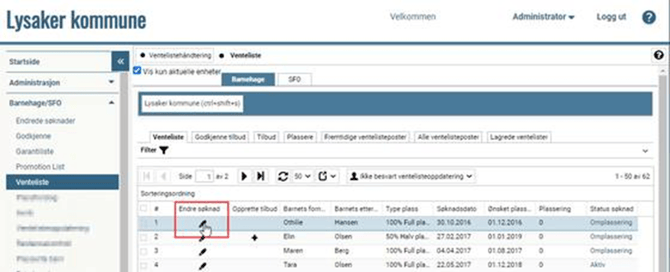 Klikk på endreikonet i kolonnen Endre søknad: