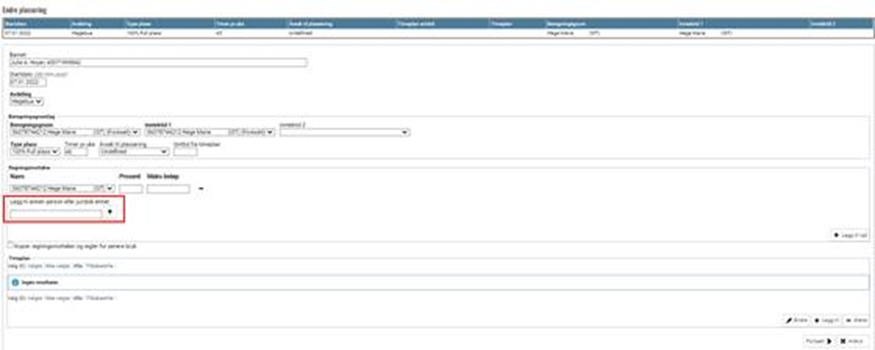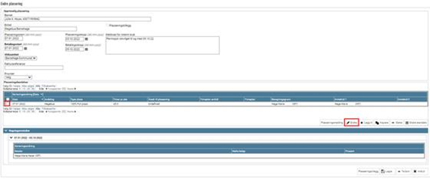 Nederst i bilde ser du hvem som er regningsmottaker. Merk raden med aktuell plasseringshendelse og klikk på endreblyanten: