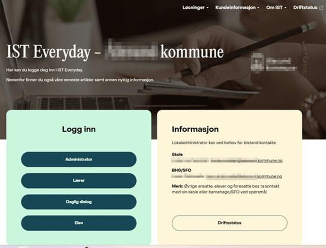 Brukere logger inn i IST Administrasjon via ulike lenker avhengig av hvilken rolle de har. Husk å erstatte "kunde" med navnet på kommunen: