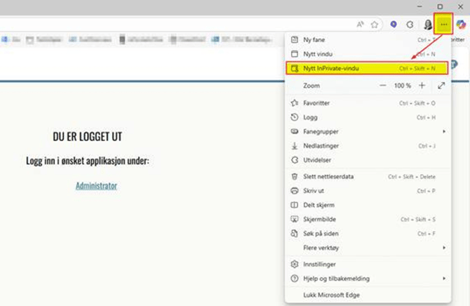 Noen brukere kan oppleve nettleserproblematikk etter f.eks. en oppgradering eller andre situasjoner, det kan være at skjermbildene ikke laster inn data som forventet eller liknende. Vi anbefaler å slette nettleserdata (cookies) eller å logge inn i inkognitomodus.