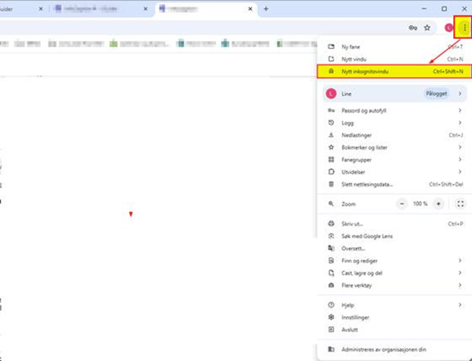 Gå til Tilpass og kontroller Google Chrome (knapp med tre prikker oppe til høyre) Klikk på Flere verktøy og Utvidelser På siden som åpnes klikker du på Utvidelser øverst til venstre og deretter Åpne Chrome Nettmarked nederst i menyen. Søk opp tillegget MultiLogin og installer denne. Det vil legge seg et symbol som ser ut som et hvitt plusstegn på blå sirkel. Denne knappen åpner en ny fane du kan benytte for å logge inn med en annen konto (rolle):