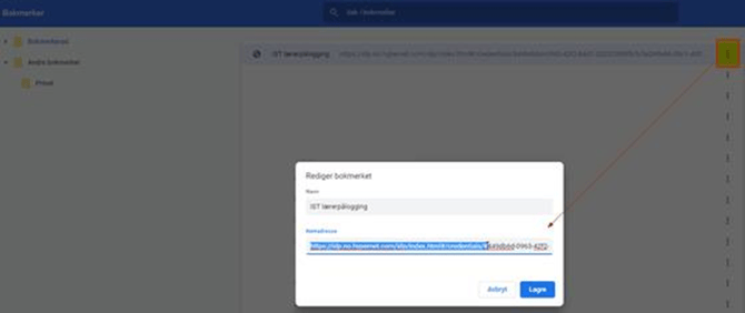 Klikk på bokmerket du akkurat lagret - klikk på knappen med tre prikker - Rediger - i feltet Nettadresse skal du erstatte den lange dynamiske lenken med den riktige lenken du har fått oppgitt, klikk deretter Lagre: