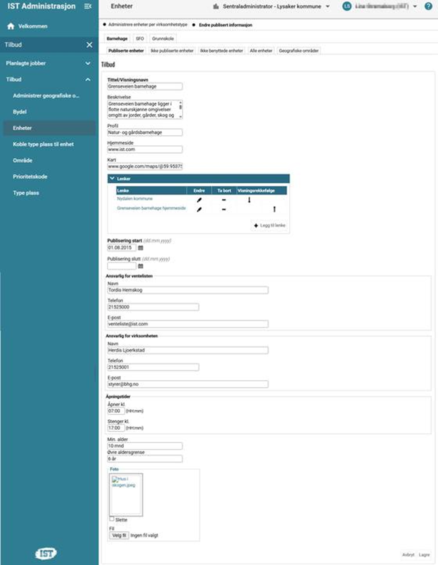 - NB! Husk å lagre. Merk at det kan ta opptil en time før eventuell ny enhet / tekst / endringer vises i publikumsportalen