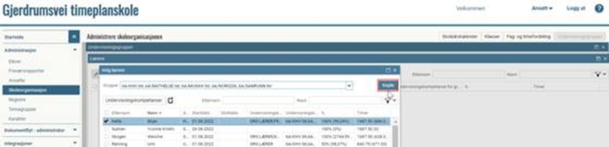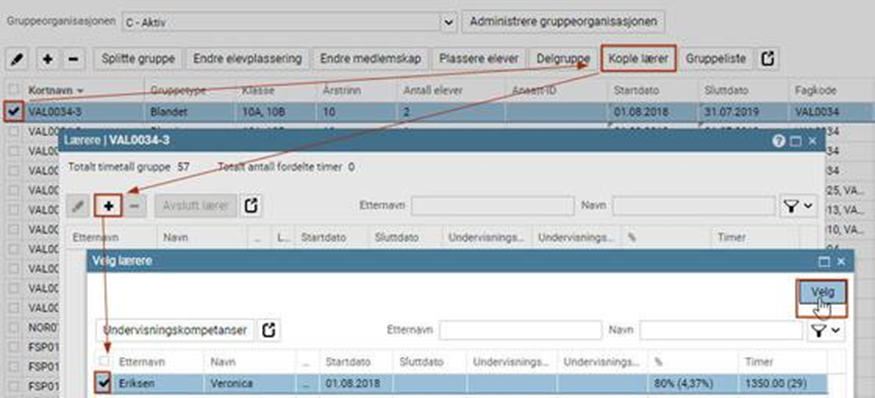 Hvis det er korrekte grupper - marker lærer og trykk på Kople: