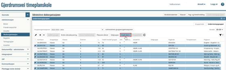 Marker gruppene du skal koble til lærer, og trykk på Kople lærer: