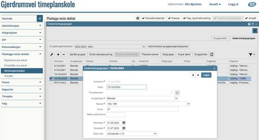 Ny undervisningsgruppe (i aktiv gruppeorganisasjon i Administrasjon)