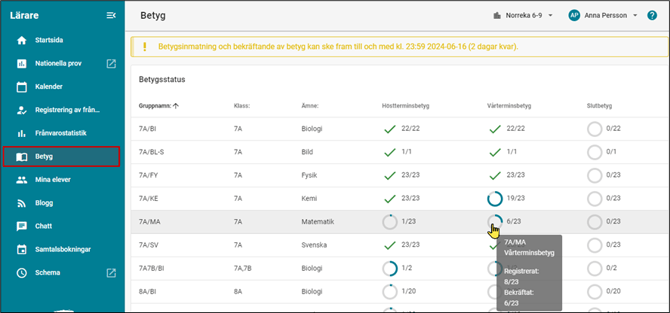 Det är viktigt att alla följer de rutiner och tider som finns uppsatta för betygs-hanteringen på din skola.