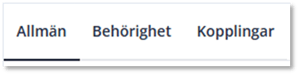 - Du kommer då till en vy med tre flikar: Allmän, Behörighet och Kopplingar.
